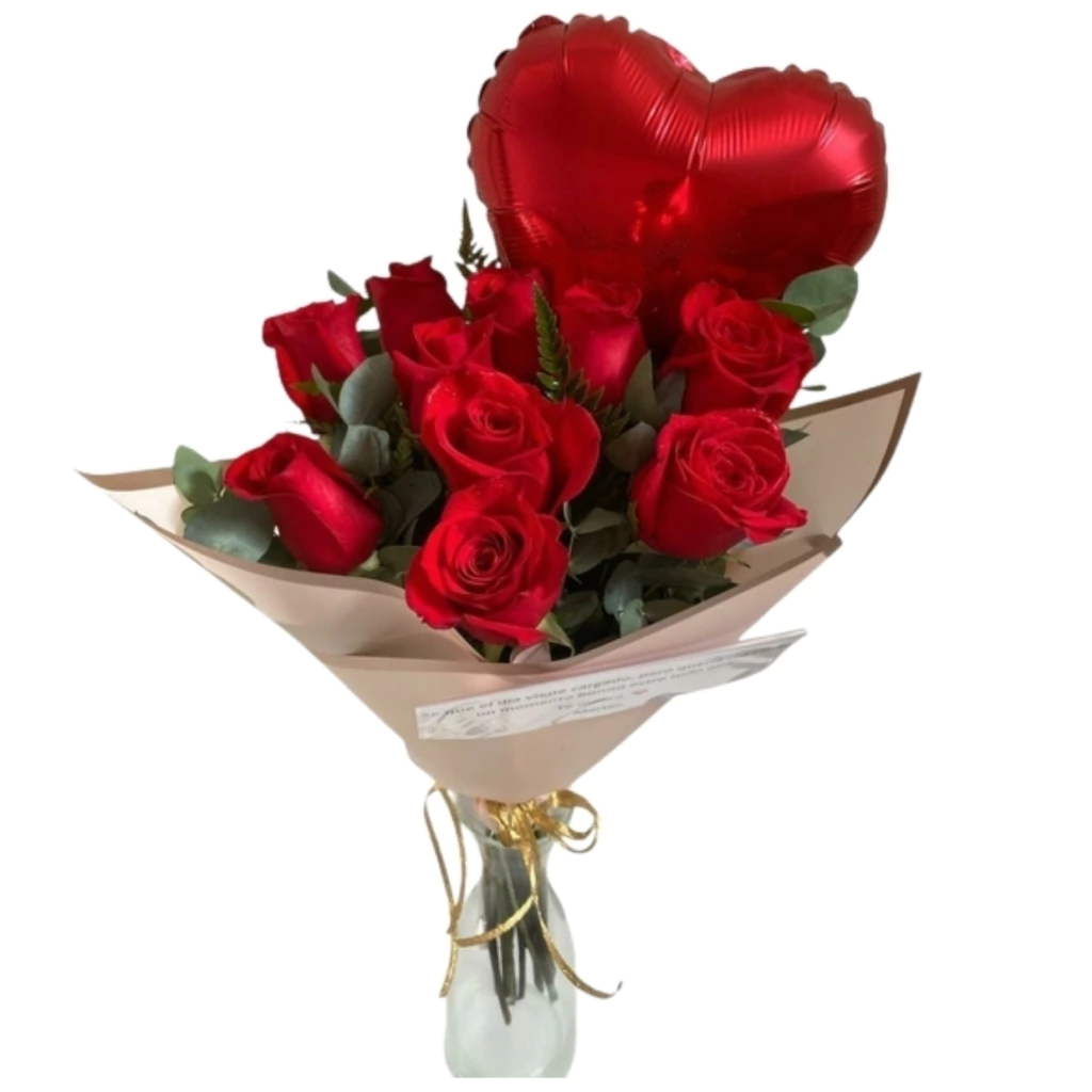 Un estallido de pasión y amor en 10 vibrantes rosas rojas, abrazadas por la promesa de un corazón que late solo por tí.